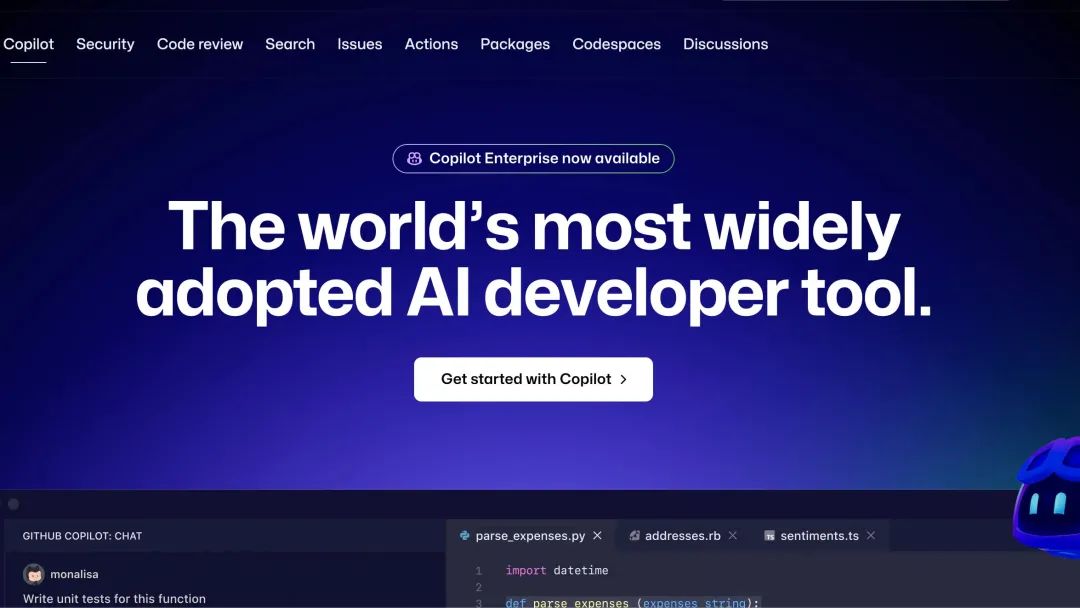 Github Copliot的AI编程辅助工具,能帮助开发者更快、更智能地编写代码,从而可以让开发者集中更多精力在更有价值的工作上,如问题解决和成员协作等方面。