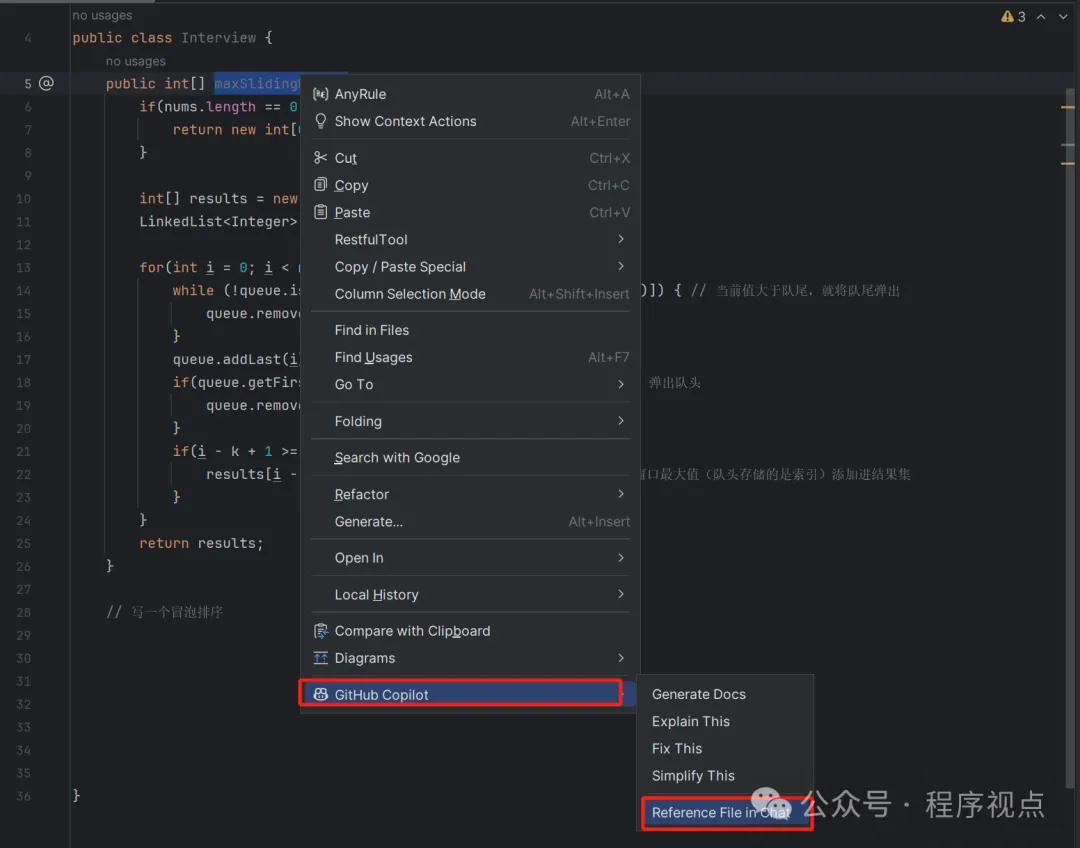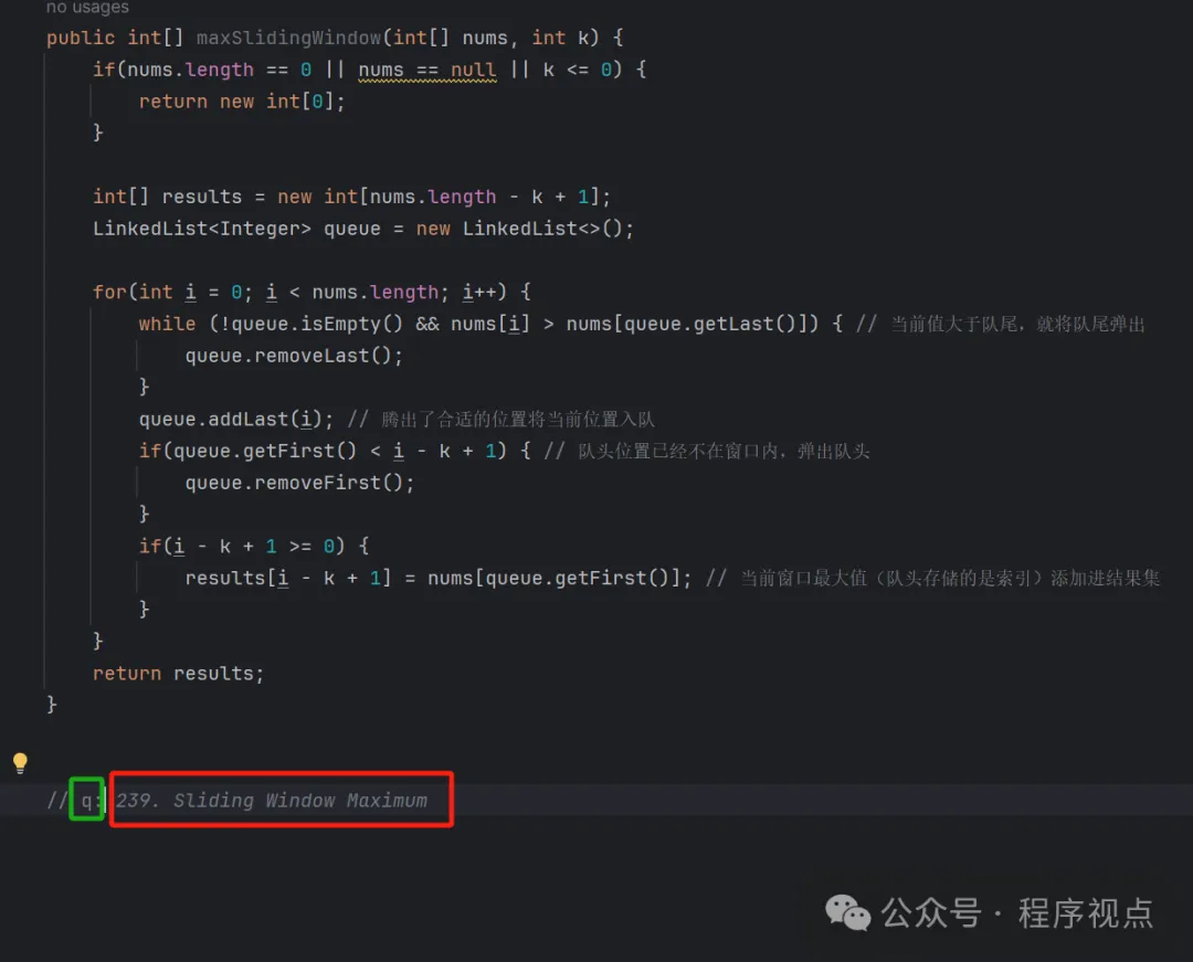 GitHub Copilot给我的提示是239. Sliding Window Maximum。因为我前面写的方式正好是解决滑动窗口问题的,对应的正好也是力扣上的第239题--只能说GitHub Copilot知道得太多了