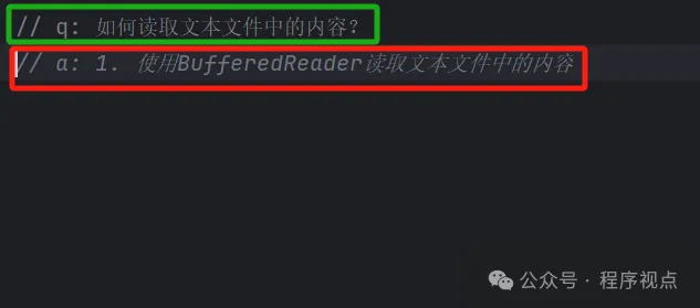 这里我继续输入问题// q: 如何读取文本文件中的内容?。文件读写是我们必须掌握的功能。我们看看GitHub Copilot怎么回答的。