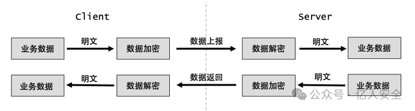同理,服务端发送至移动客户端的消息也需整体进行加密,移动客户端对接收到消息进行解密。通信加密示例流程如图 1 所示。