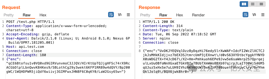 通信数据全部为密文,即使攻击者成功绕过了客户端的防抓包策略,抓取到客户端与服务端的通信数据,也无法对其正常进行分析。