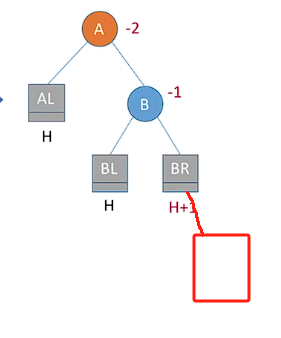 这个时候 a结点的左子树高度是H+2 右子树高度是H所以 平衡因子是2 此时不平衡!