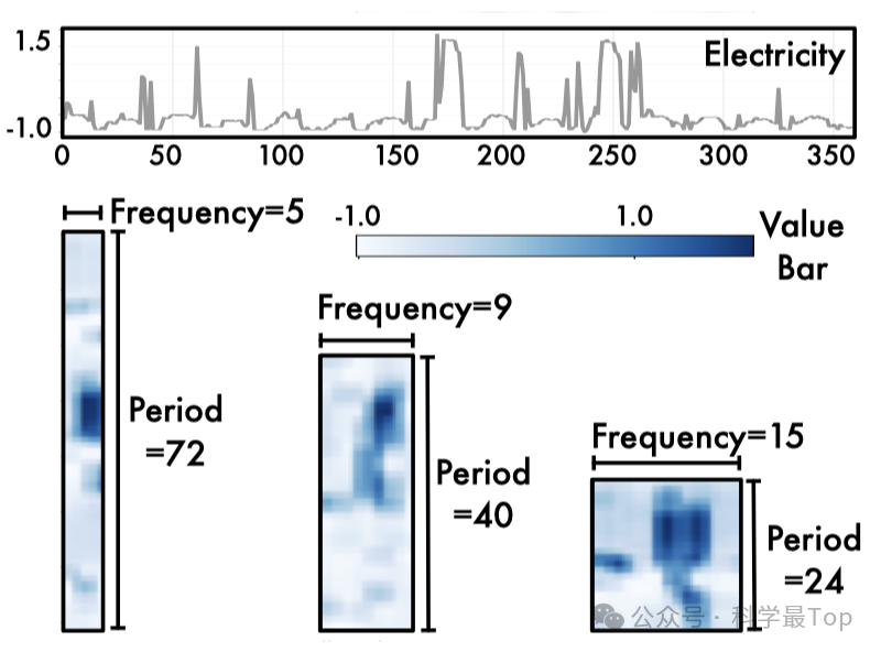 作者基于多个周期将原始的一维时间序列转换为一组二维张量,从而统一了周期内变化和周期间变化。