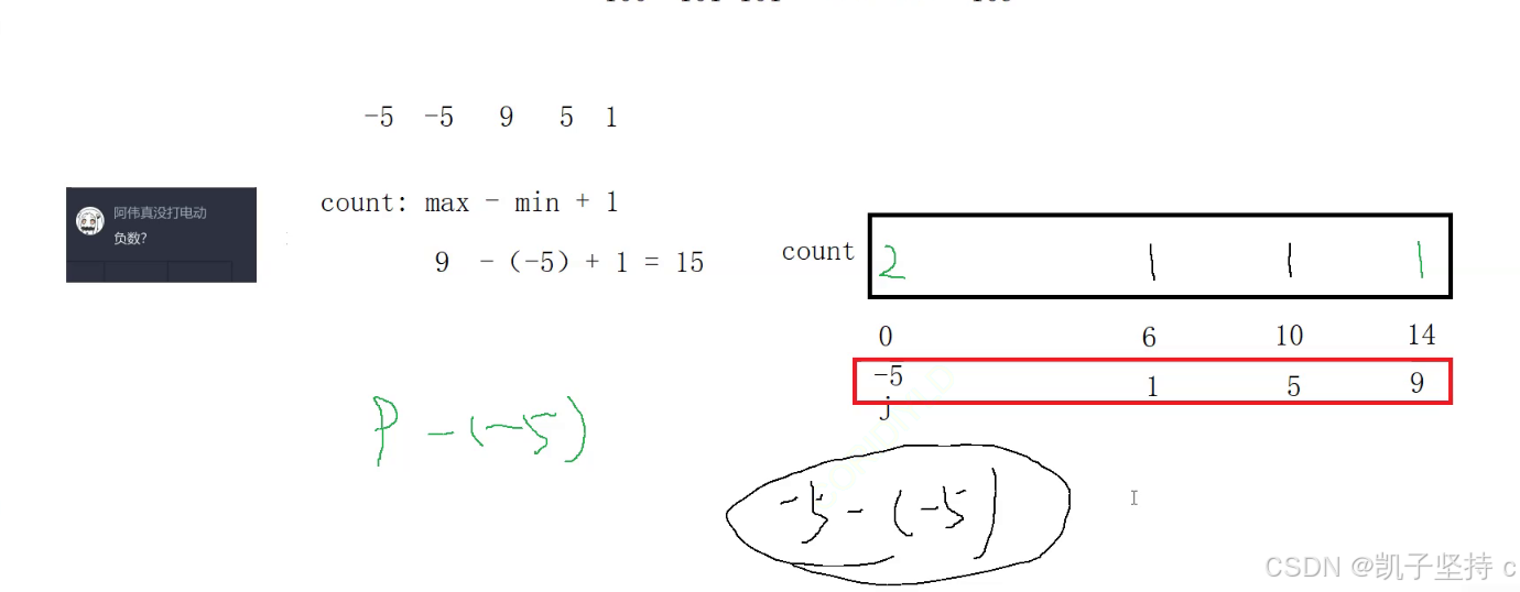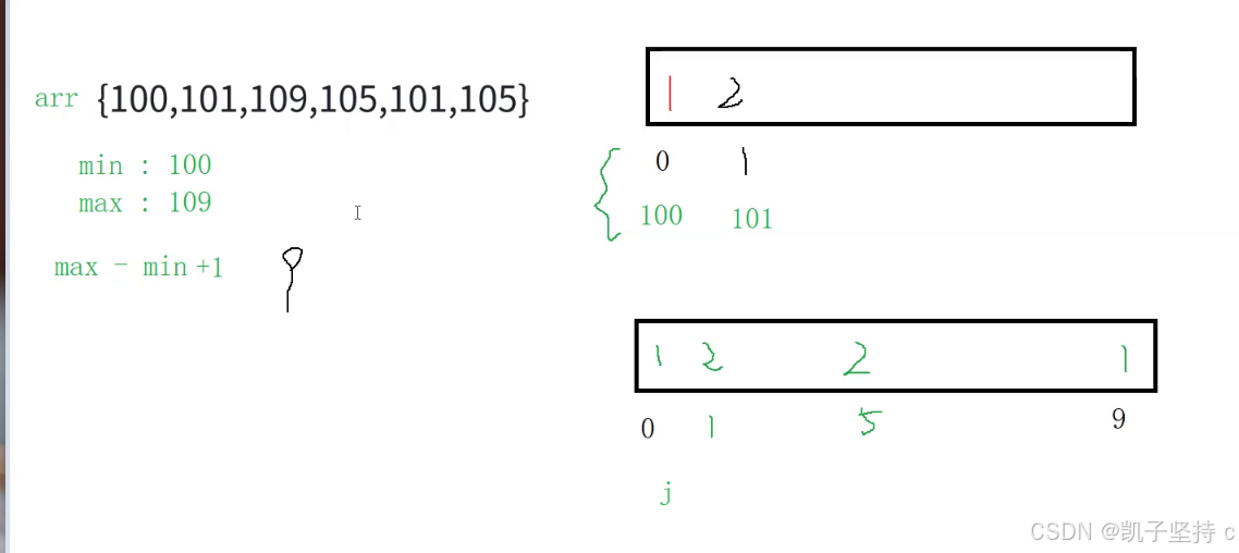 //这个arr[i]-min就是我们我们数据映照在新数组的下标,