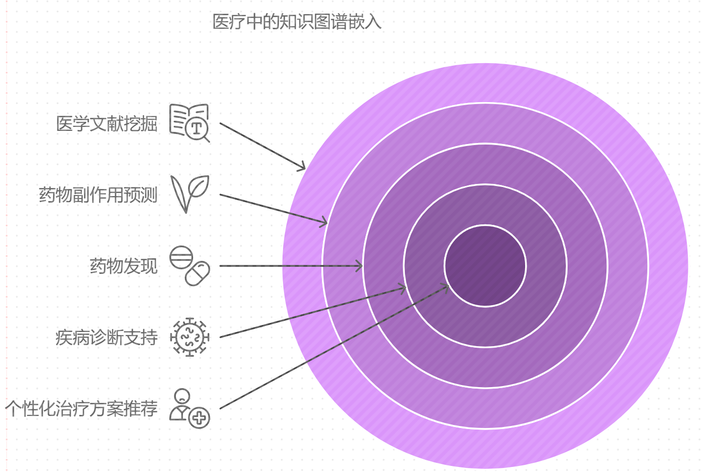 疾病诊断支持 | 通过识别疾病与症状、基因、环境因素之间的联系,辅助疾病的早期诊断。 |
