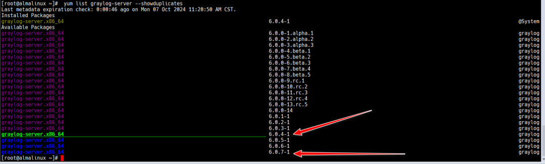 yum list graylog-server --showduplicates