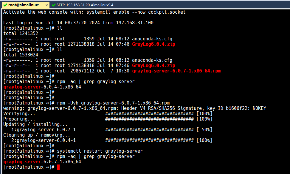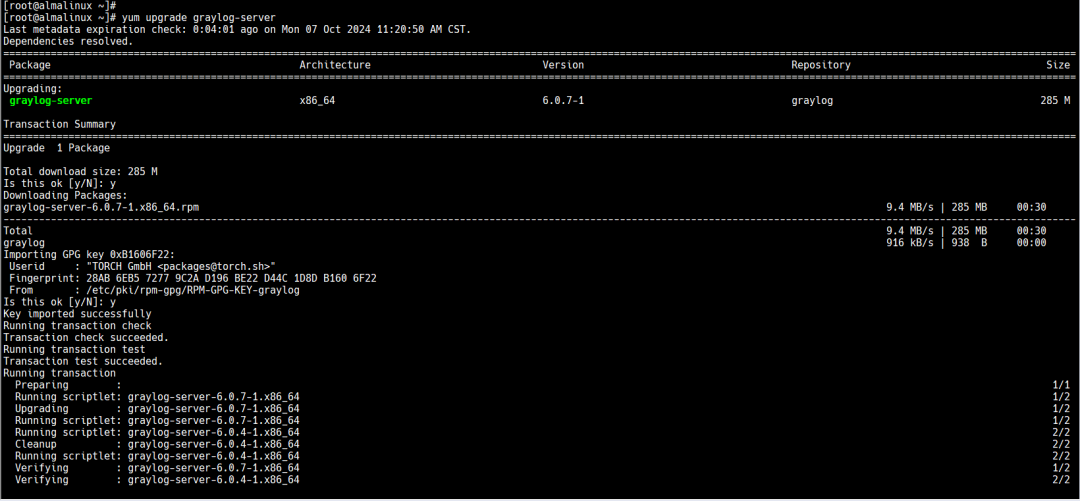 rpm -Uvh graylog-server-6.0.7-1.x86_64.rpm