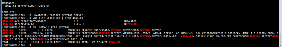 systemctl restart graylog-server ; ps -aefww | grep graylogyum list installed | grep graylog