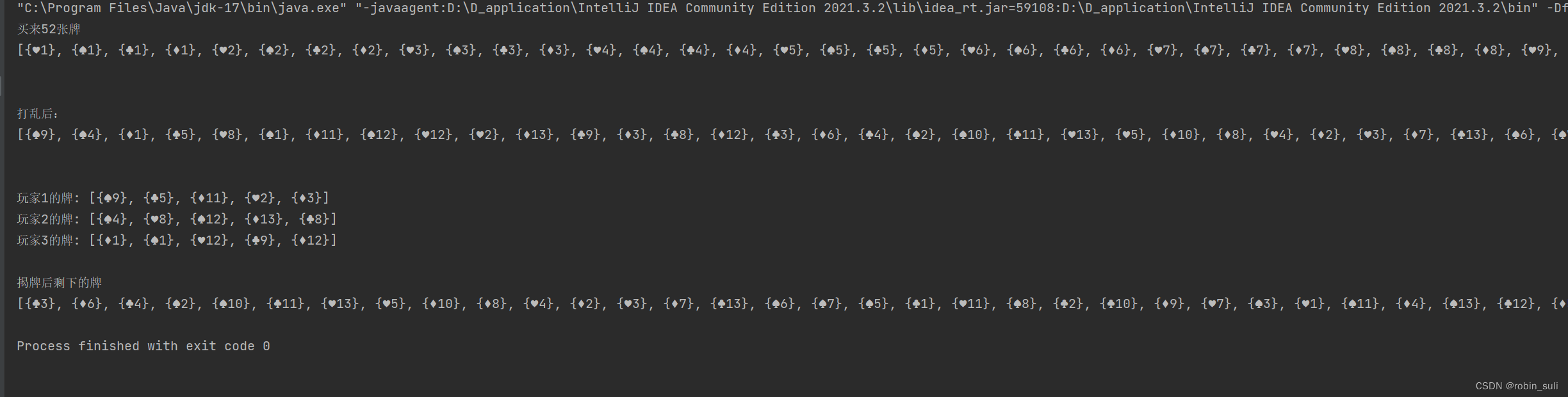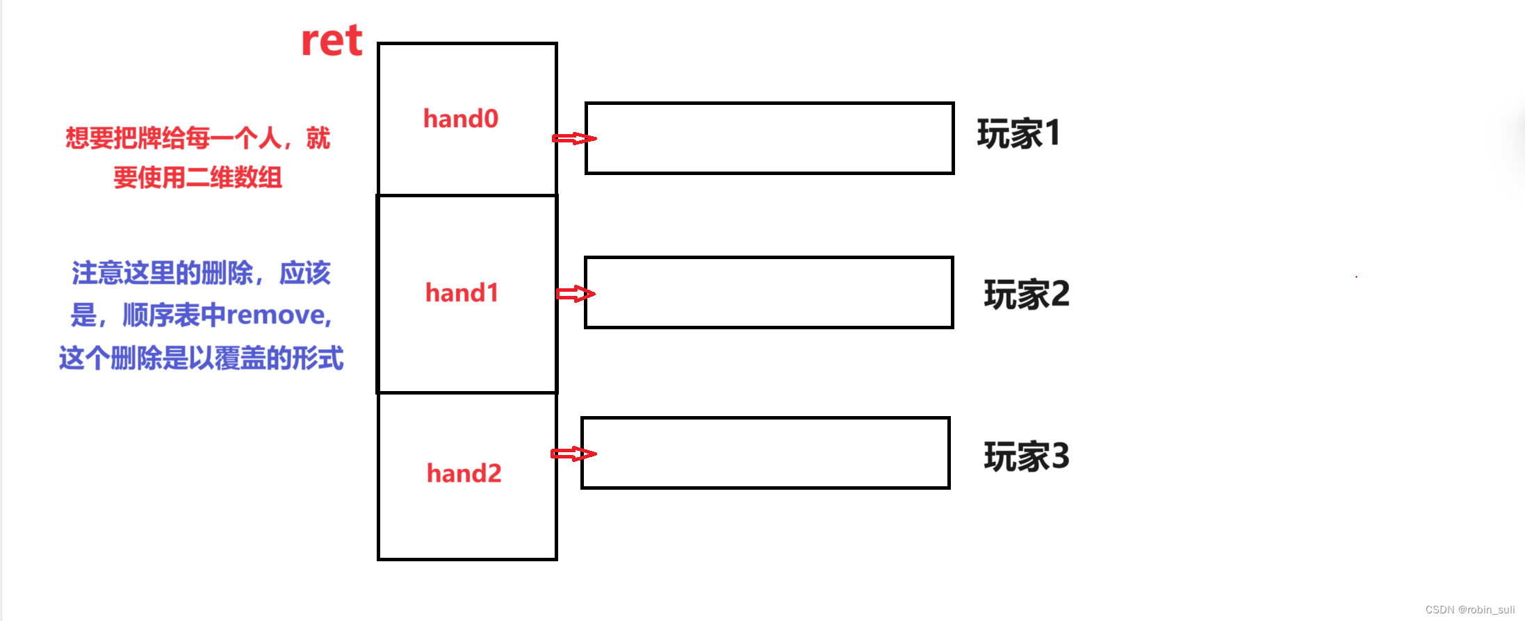 1.学了ArrayLisy之后,来看一下其应用,这里的洗牌算法,会用集合来定义二维数组,来把牌分别放到不同玩家手中,接下来有我娓娓到来:
