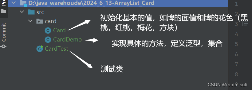 (1)买52张牌:这里注意要,声明Card对象,来通过构造方法来,初始化,每一张牌,每一张牌又有四种花色。