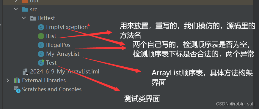 我们可以仿照源码自己去实现,这里我们实现几个常见的方法,(注意ArrayList不止这些方法),自己的ArrayList