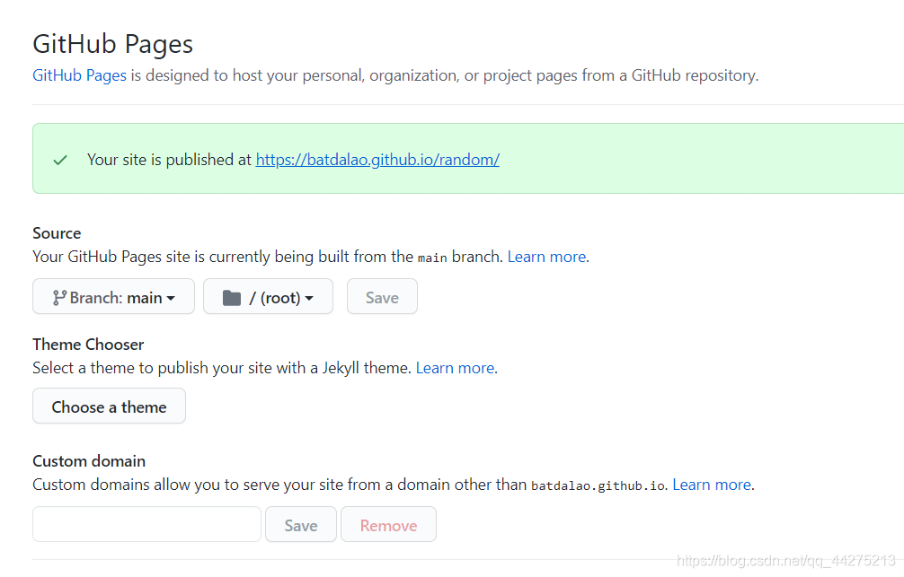 点击 "Setting"按钮,在option里面下滑到 “gitHub Pages”