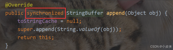 StringBuffer 的核心方法都带有 synchronized。