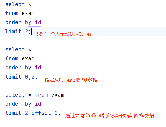例如从第0条开始,往后读取2条数据有一下这几种写法:
