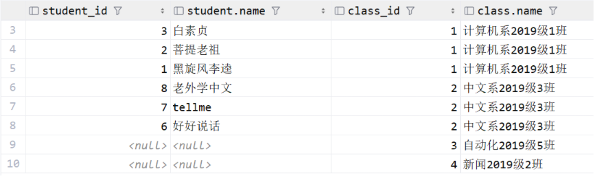 and name != '许仙';要注意的是外层条件的列,与同层查询条件的列必须要匹配