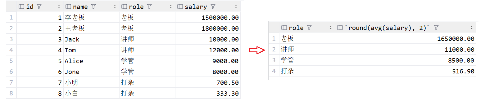 select role, round(avg(salary), 2) as 平均薪资