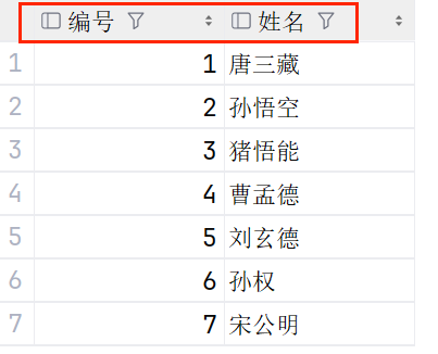 指定列查询: