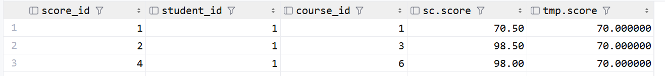 -- 用表中的真实成绩和临时表比较