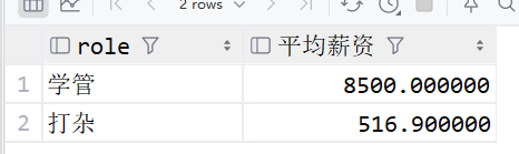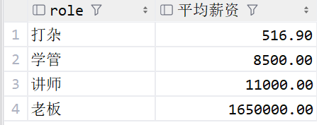 select role ,avg(salary) as 平均薪资