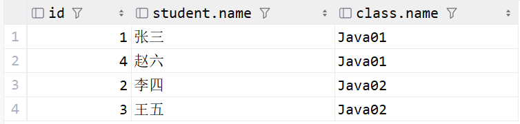 select name from student where class_id = 1;下面来看子查询的形式