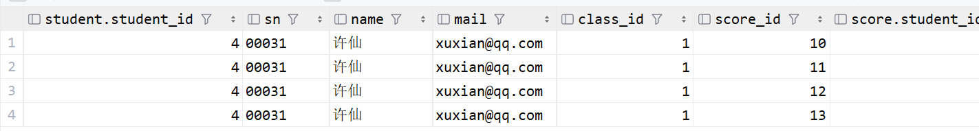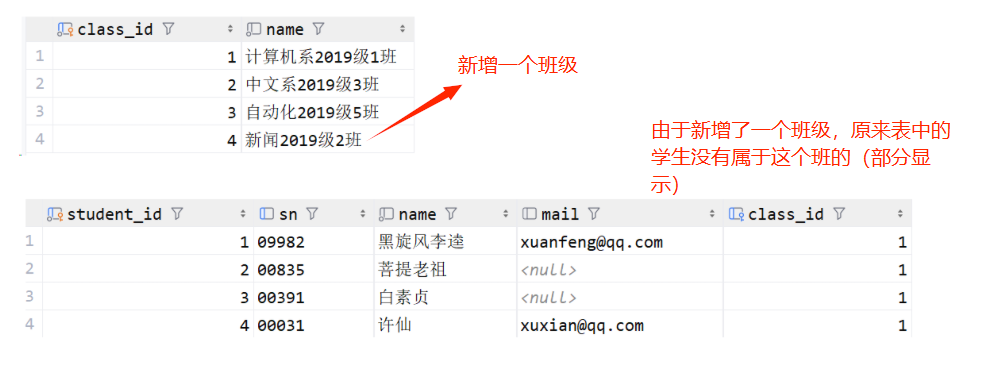 -- 得出许仙的 class_id 是 1