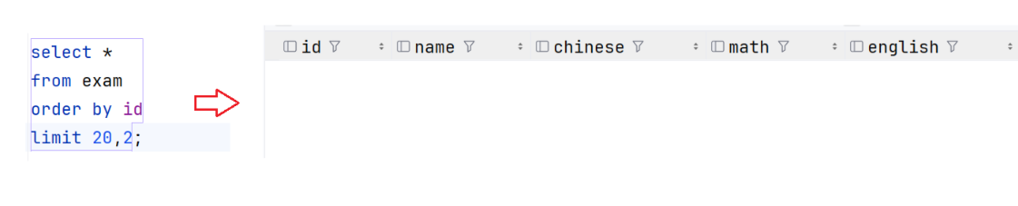 如果说指定的起始位置超出了整个表的范围就会返回一个空的结果集
