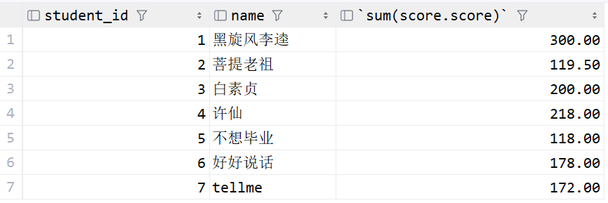 and c.name = '中文系2019级3班';接下来用表中的真实成绩和临时表比较