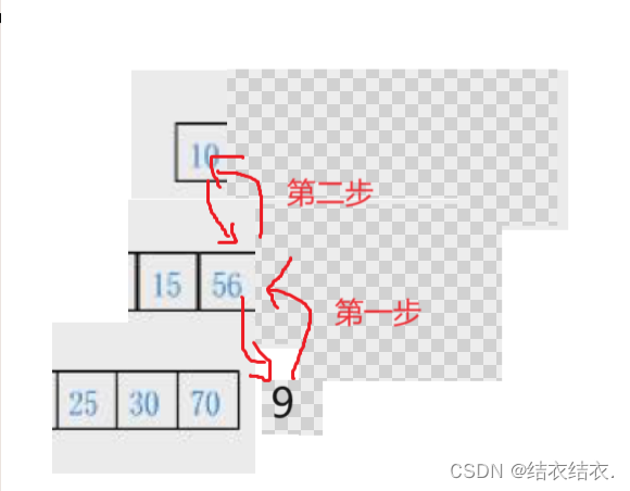 如果我们在最后插入的数据是一个大于等于56的数就没有问题,但是如果我们插入的是一个小于56的数呢?直接插入就不会满足小堆的结构了。