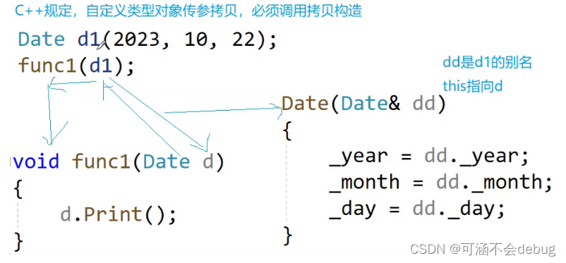 规定,自定义类型对象拷贝的时候,调用一个函数,这个函数就叫做拷贝构造。