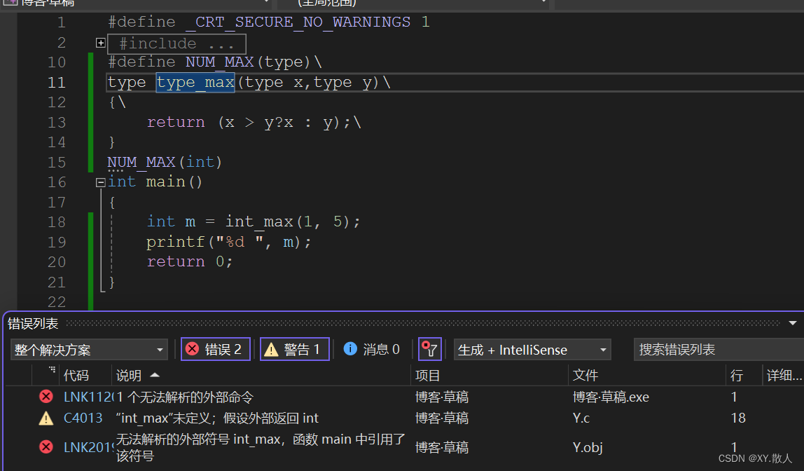}创建好宏直接,NUM_MAX(int),就表示有个函数专门比较整型大小的,好奇心强点的就会去把##删了,因为感觉加不加都一样,但是一下就报错了,像这样: