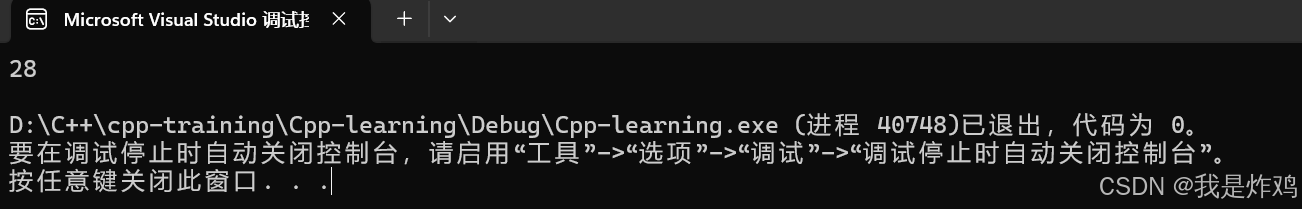 我们画出d的对象模型就知道了,最顶层是b,b里面有一个a,b的下面有c,c的里面有一个a,加上两个虚表指针,这里d也是应该没有虚表指针的,虚函数的地址应该是防止B里面,所以打印出来的结果就应该是28。