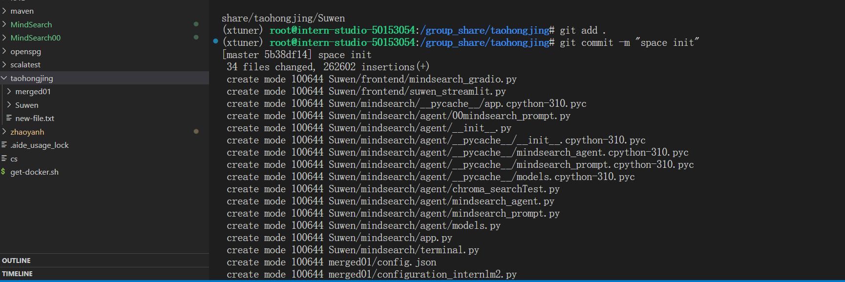 git commit -m "space init"