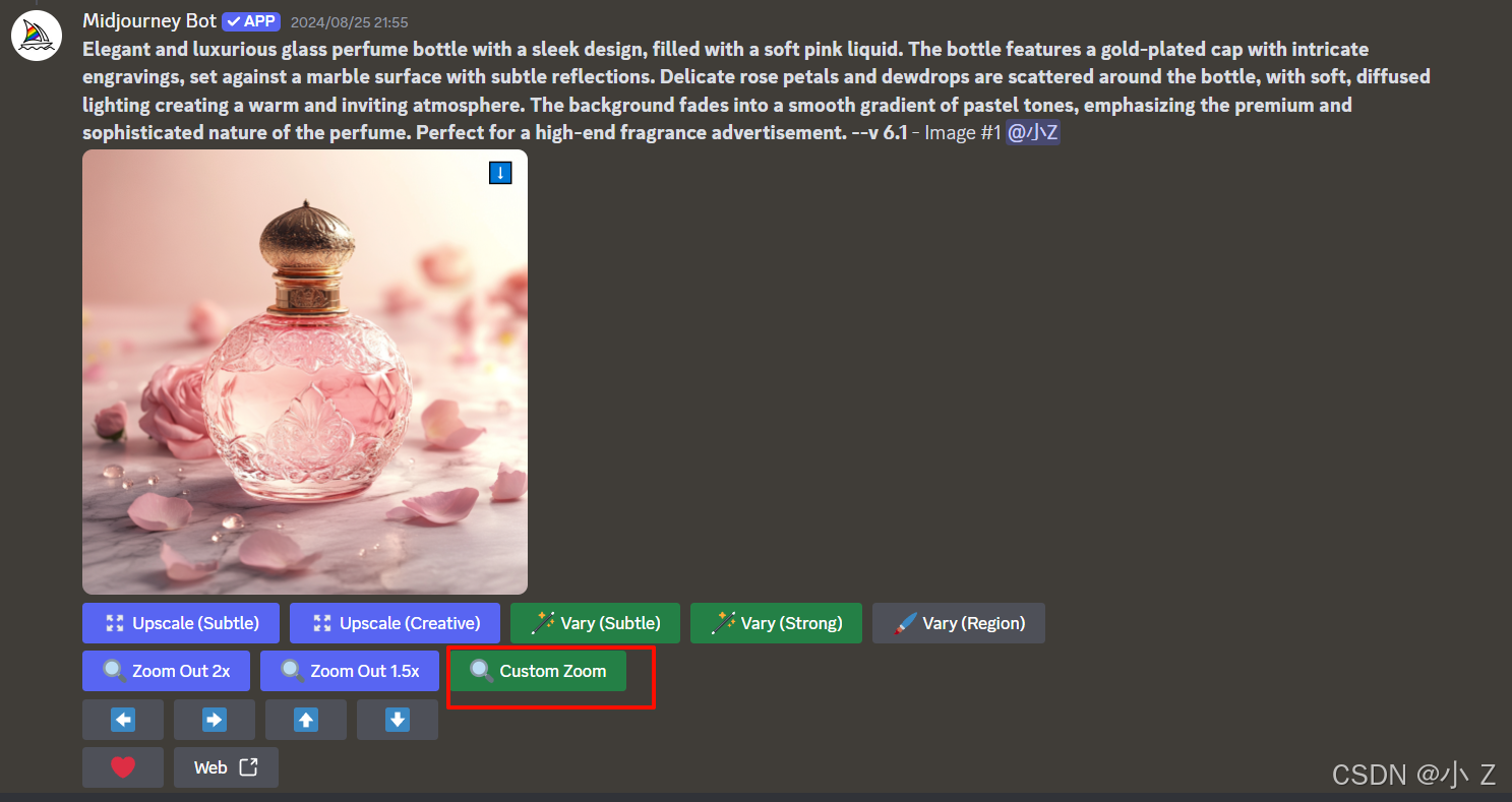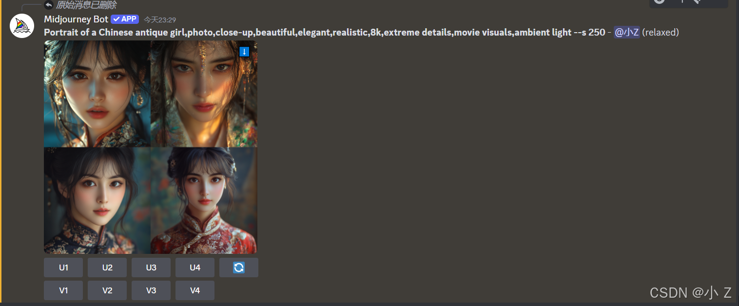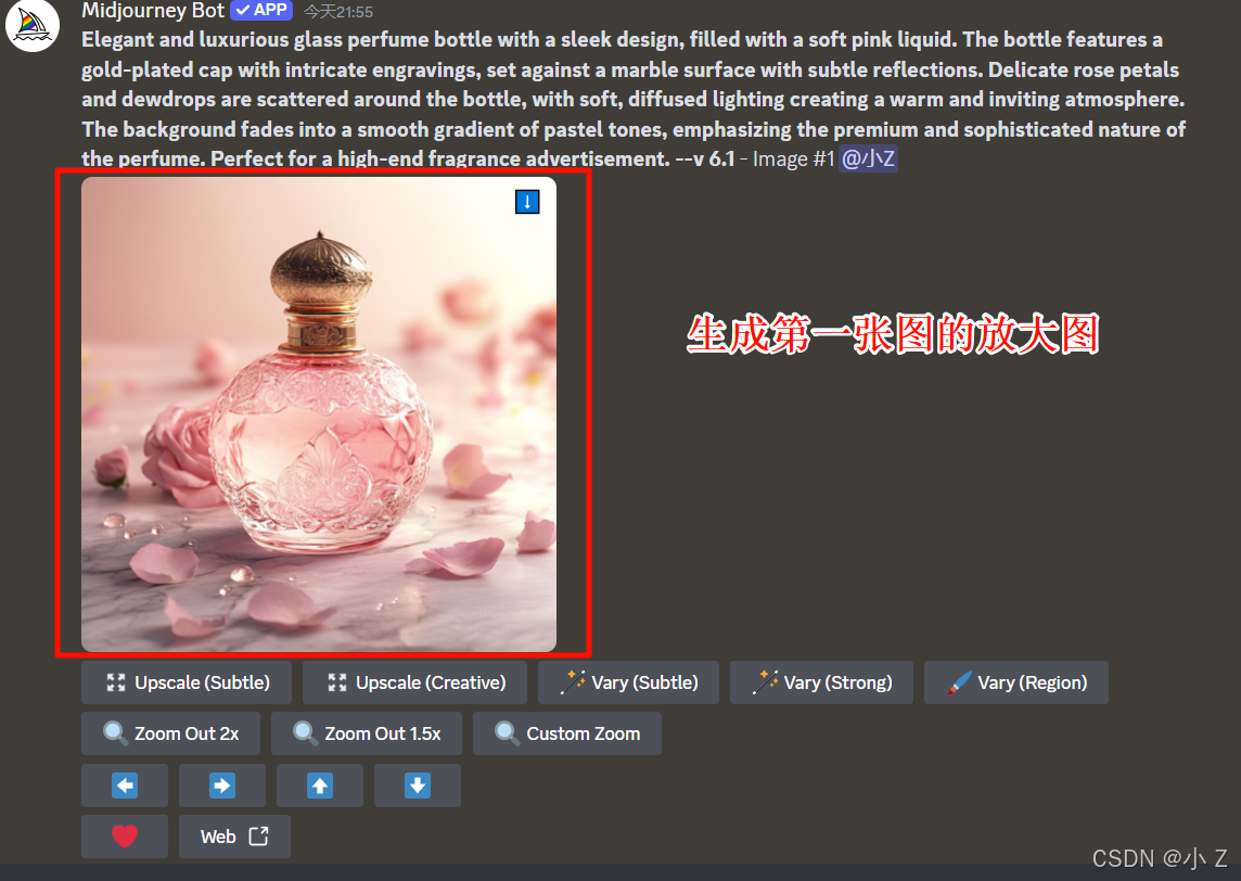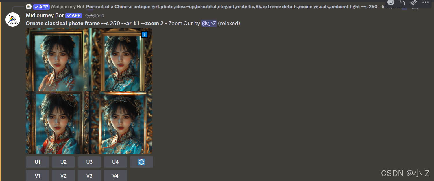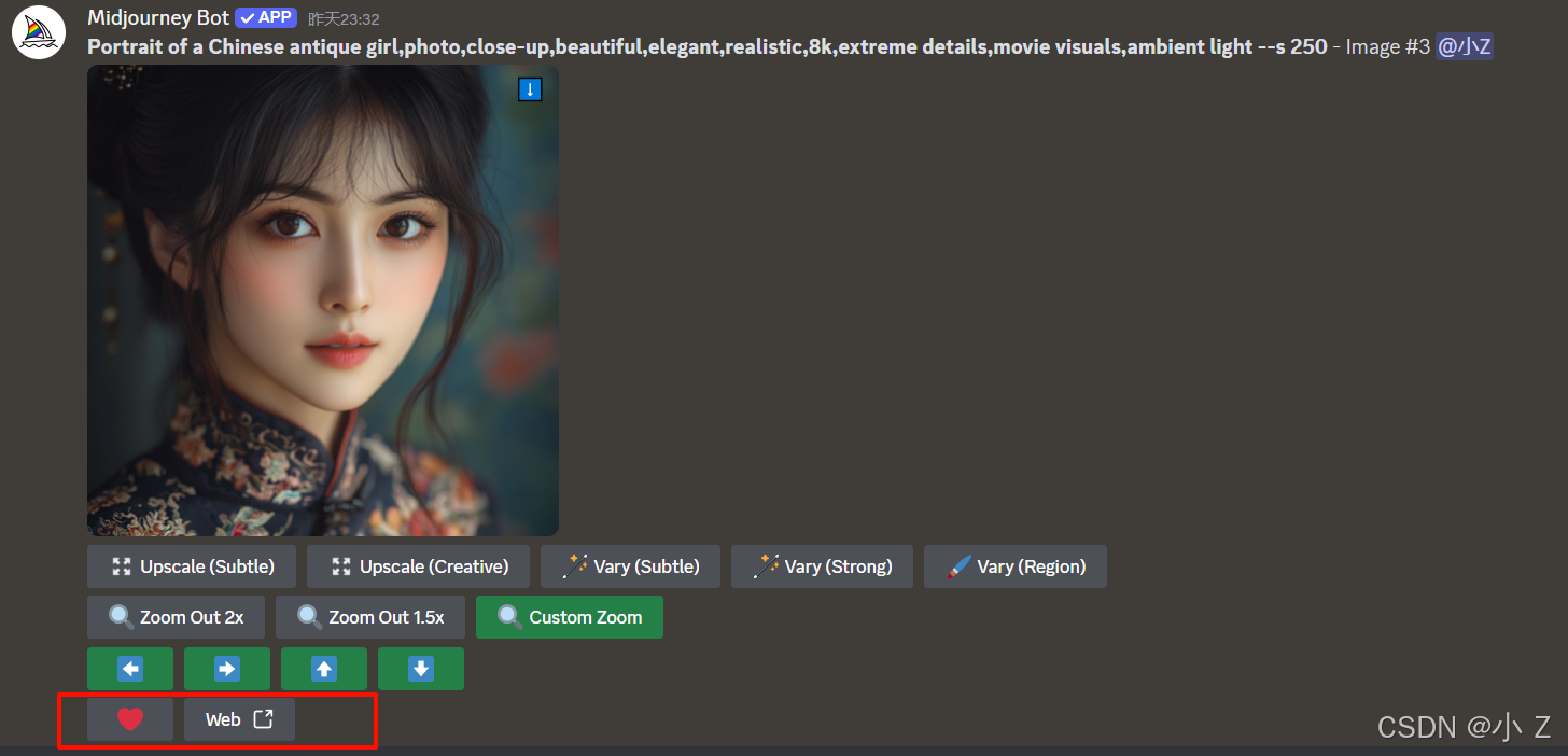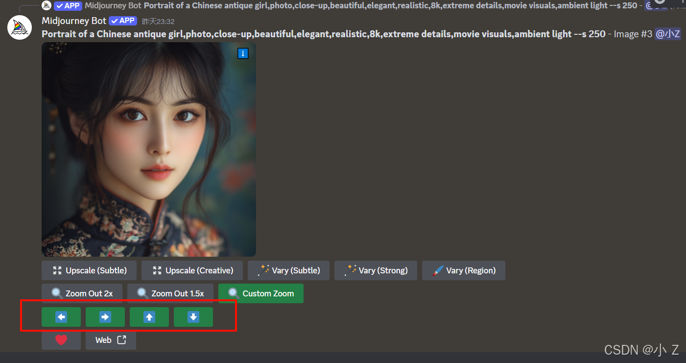 AI绘画的发展,不仅使艺术创作变得更加大众化,让更多的人能够接触并使用这些前沿的技术进行创作;更重要的是,它激发了人们对创意表达的无限可能性。Midjourney的各种功能,例如Upscale、Variations、Custom Zoom等,不仅体现了AI技术的进步,也展现了技术与艺术融合所带来的无限可能。这些工具不仅仅是为了提升图像的质量,更是在探索艺术表达的新方式,使得创作者可以更自由、更大胆地尝试不同的创作风格和形式。
