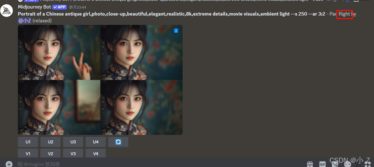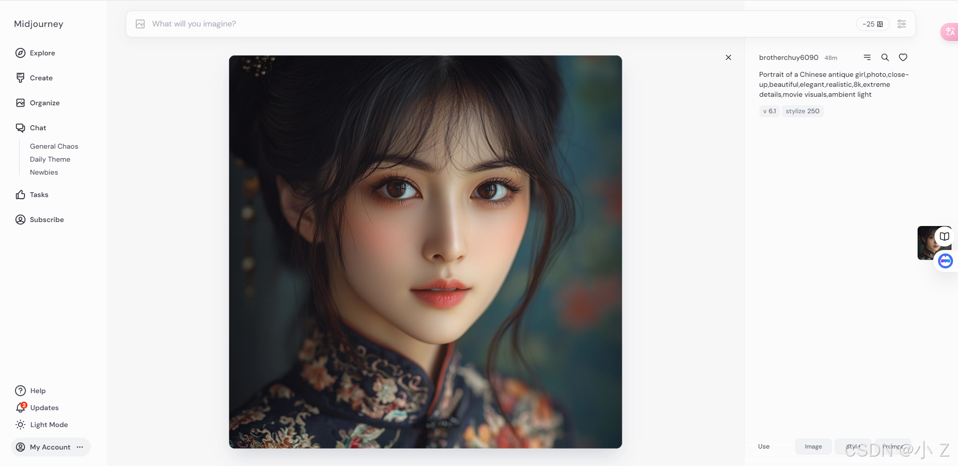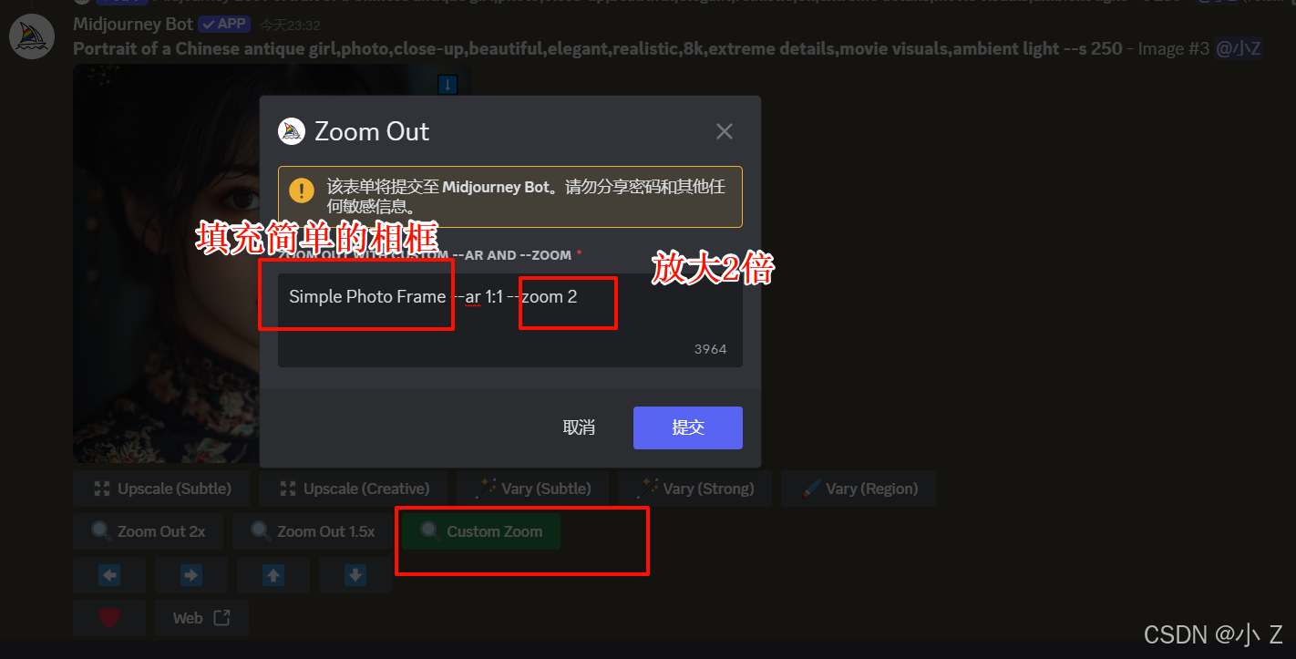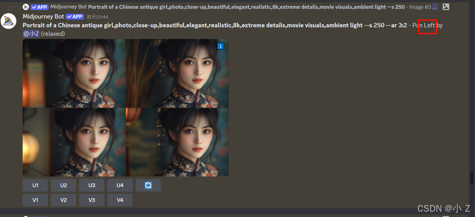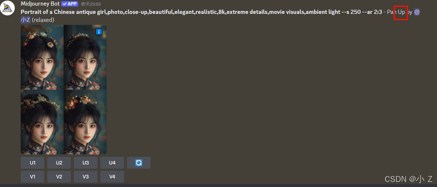 AI绘画的发展,不仅使艺术创作变得更加大众化,让更多的人能够接触并使用这些前沿的技术进行创作;更重要的是,它激发了人们对创意表达的无限可能性。Midjourney的各种功能,例如Upscale、Variations、Custom Zoom等,不仅体现了AI技术的进步,也展现了技术与艺术融合所带来的无限可能。这些工具不仅仅是为了提升图像的质量,更是在探索艺术表达的新方式,使得创作者可以更自由、更大胆地尝试不同的创作风格和形式。