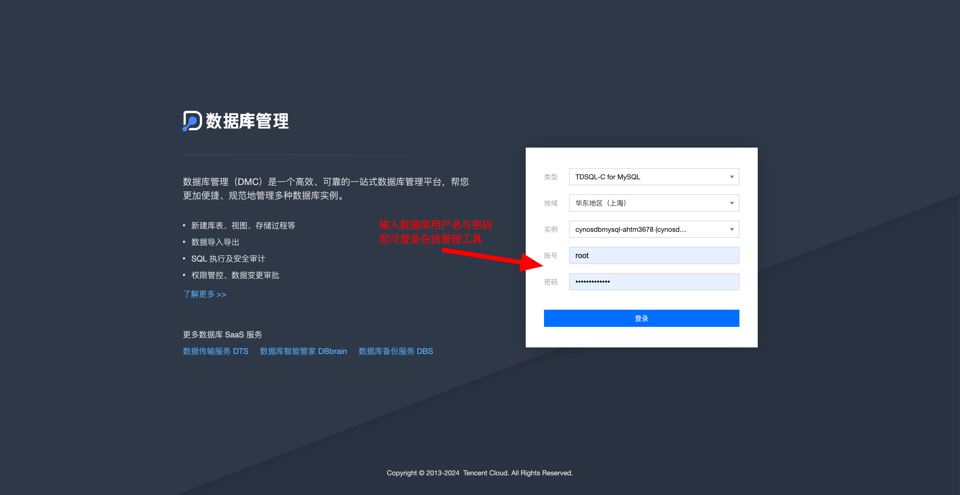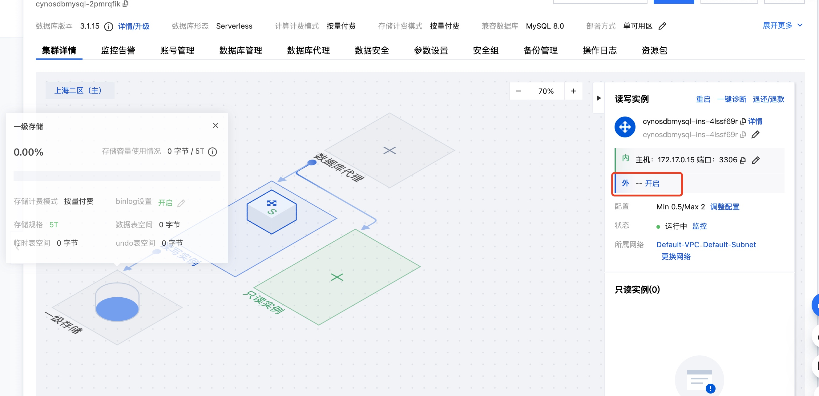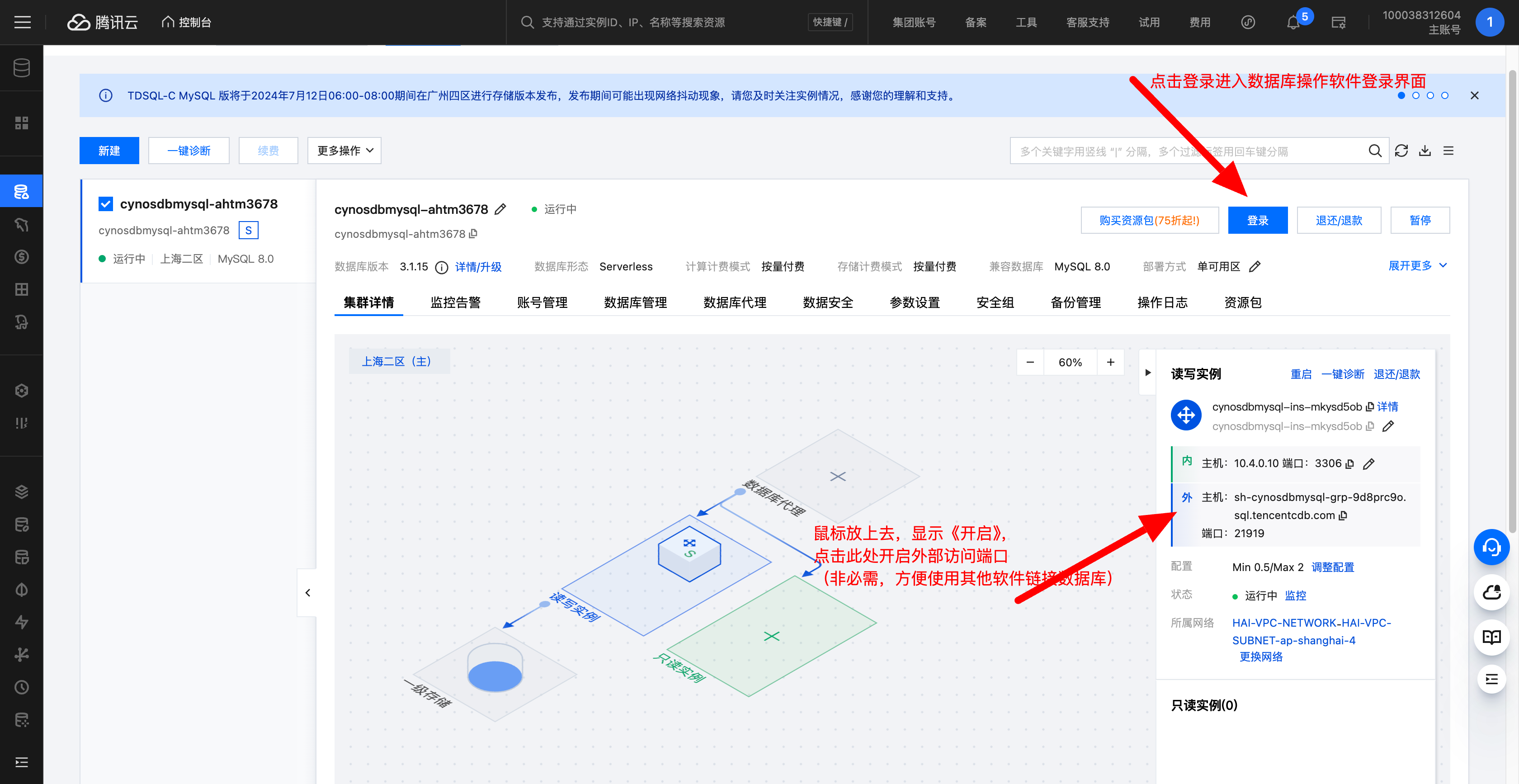 database 中填入 TDSQL-C 的相关配置,db_host、db_port可以在集群列表中找到