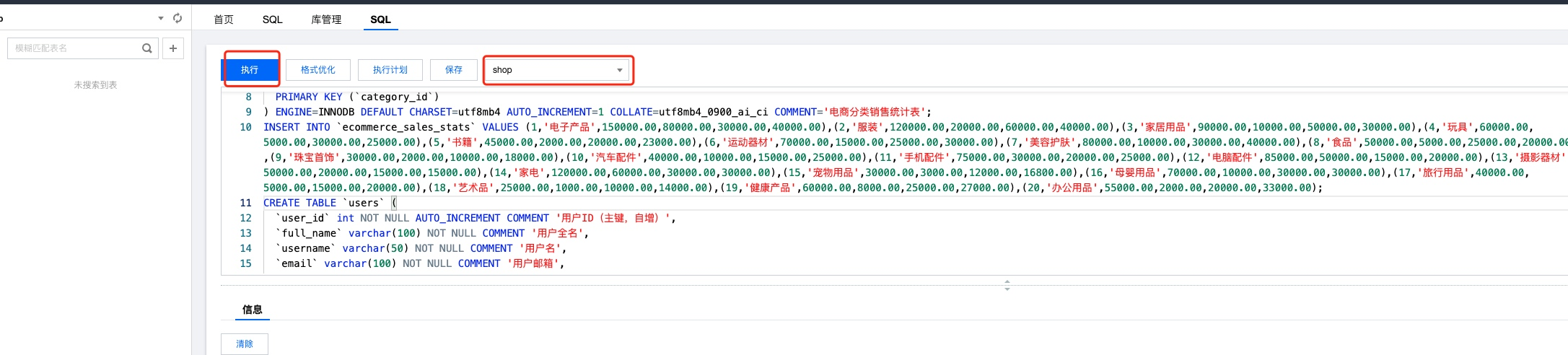 */将以上SQL复制到SQL执行窗口,确保当前数据库选中 shop
