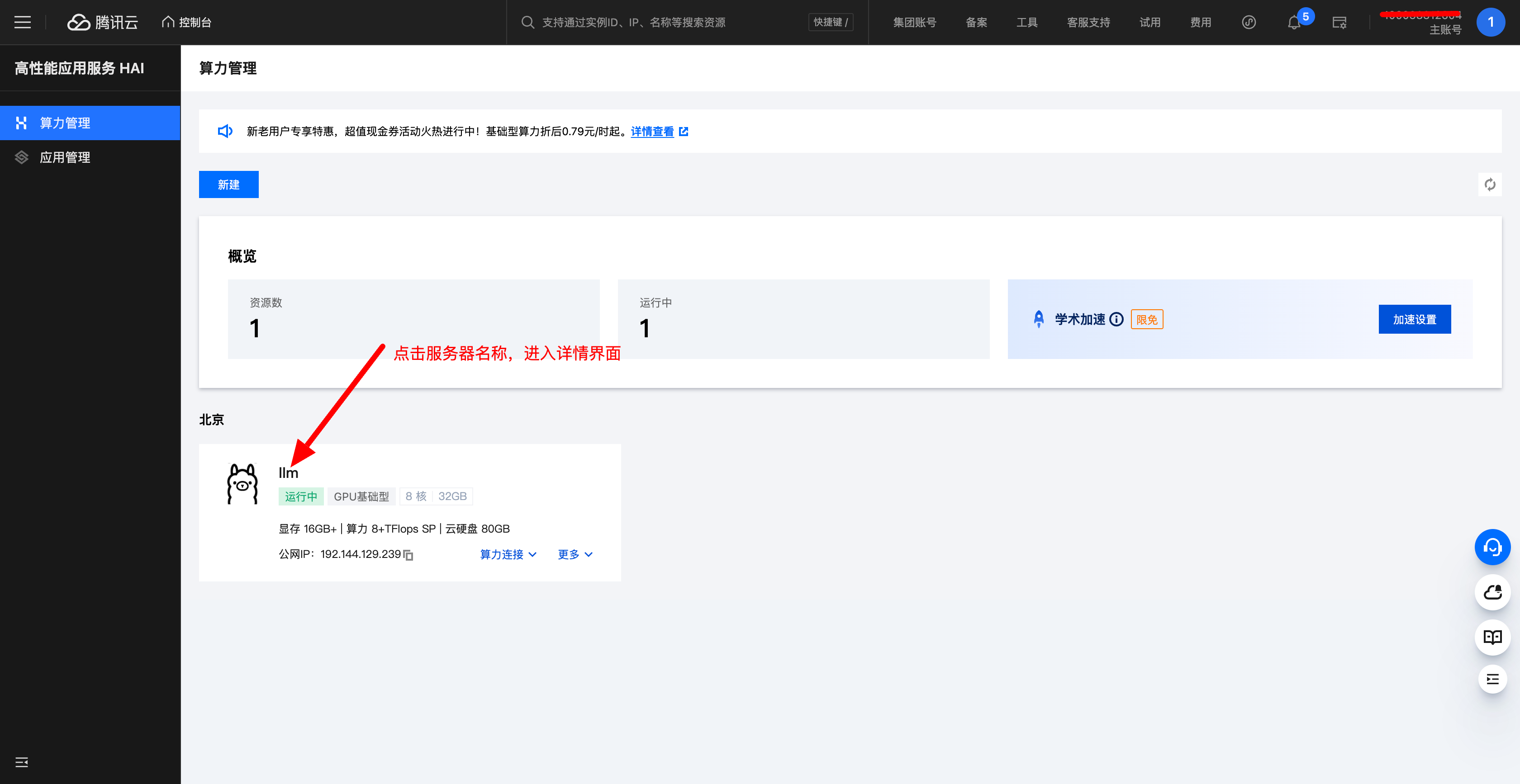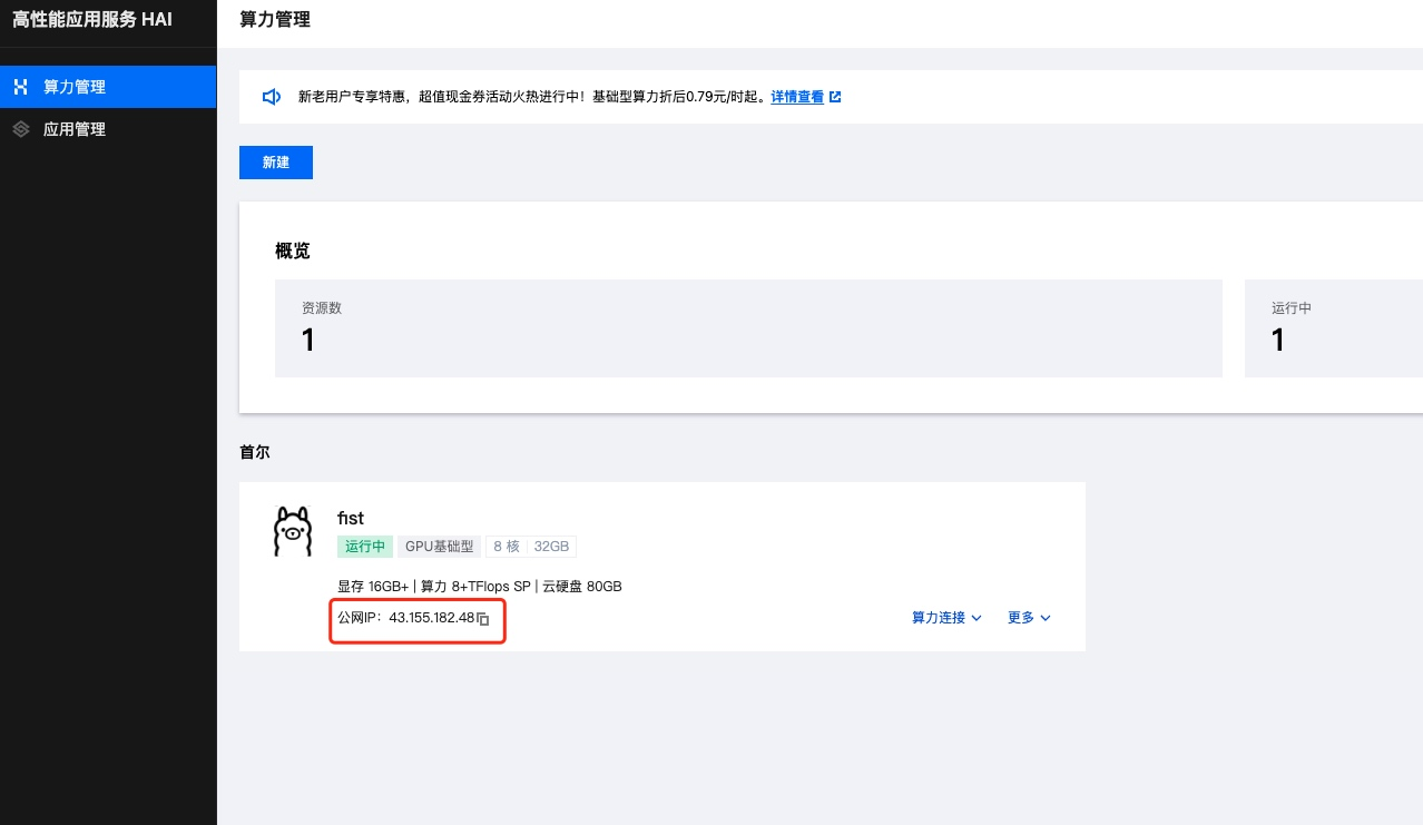 hai base_url将实例的ip进行替换,ip可以在HAI的控制台-> 算力管理中找到