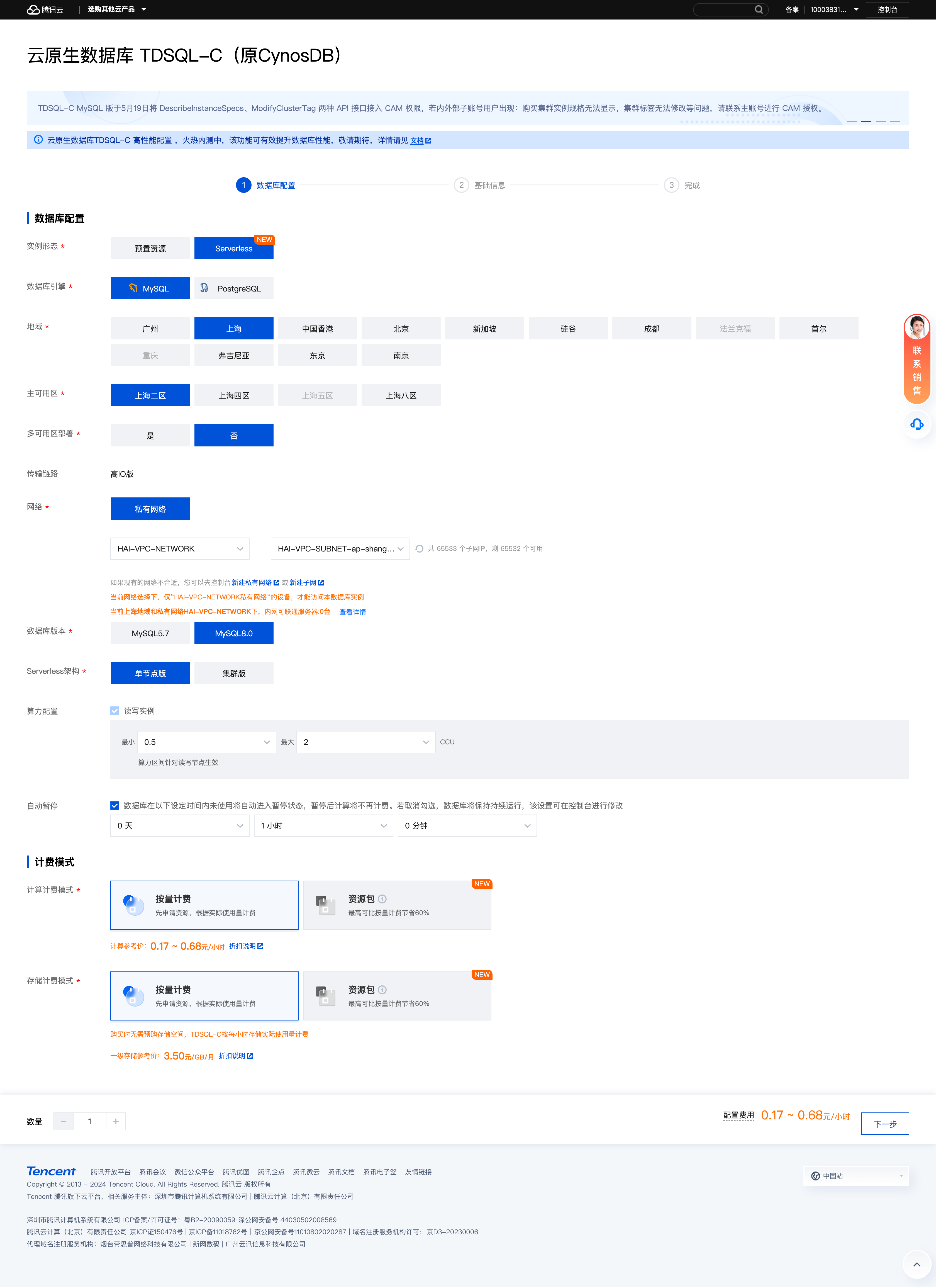 TDSQL-C Mysql Serverless 数据库服务器准备完毕!
