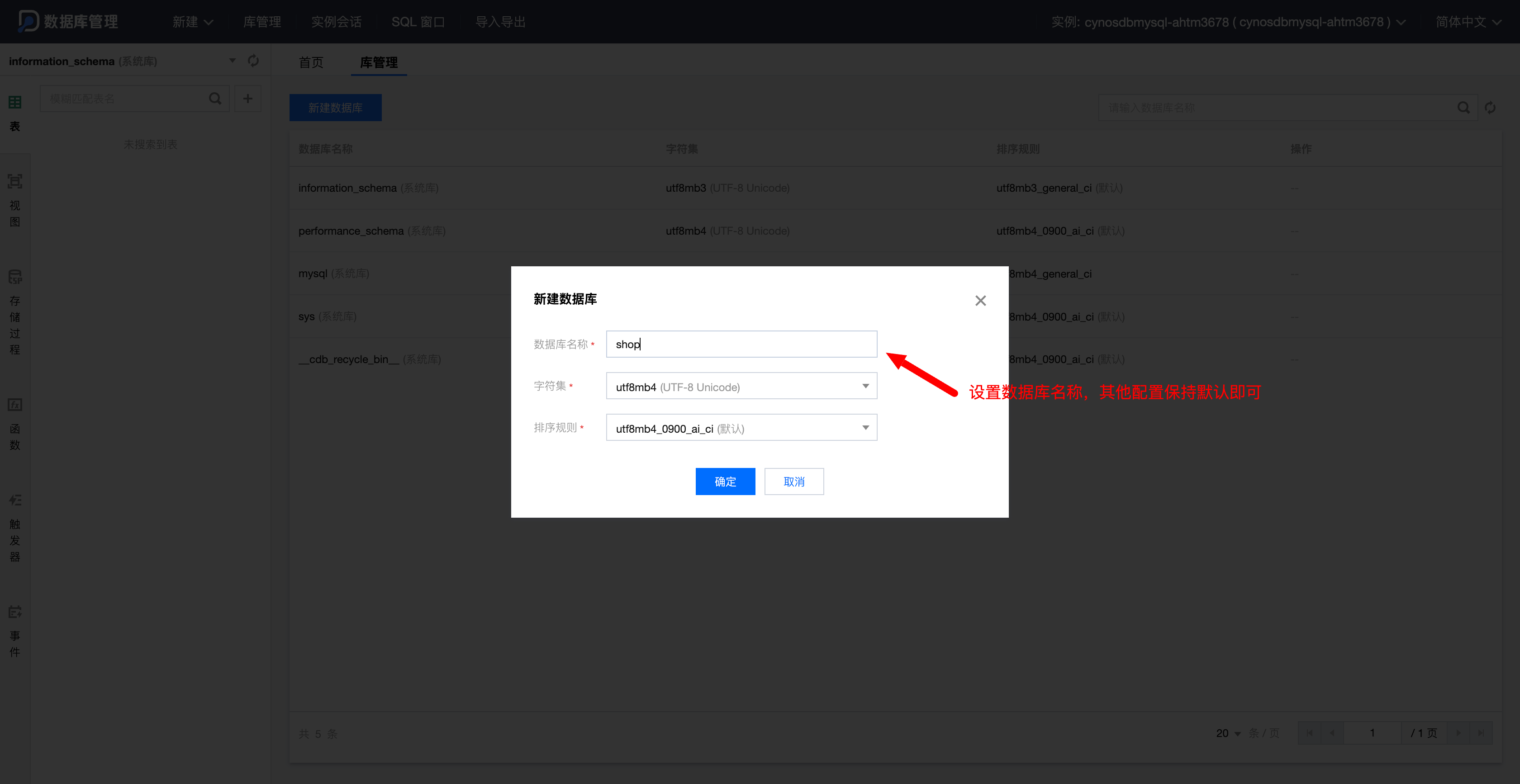 db_name 创建的数据库名称,如果按手册来默认是 shop