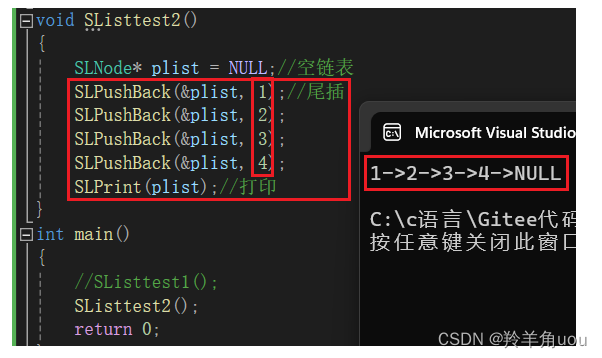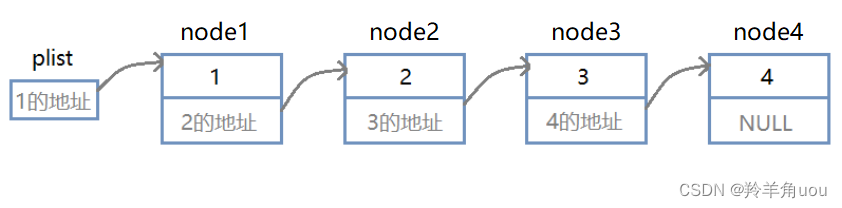 测试时我们不直接传链表的第一个节点node1,而是再定义一个结构体指针plist去指向node1,让plist作为参数传过去