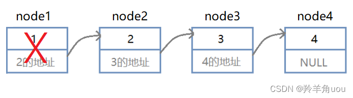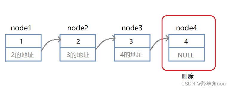 很显然,首先就是找尾节点,找到尾节点之后直接释放吗?node4释放后node3->next里面依然存放着node4的地址,但此时指向的空间已经没了,此时的指针就成了一个野指针 ,所以我们还要将被释放节点的前一个节点的指针置空