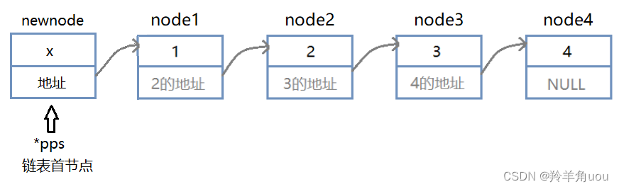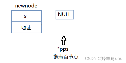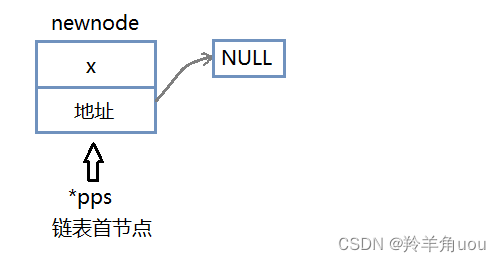 我们需要做两件事,一个是将newnode和原本的首节点连接在一起,另一件事是*pps要指向新的首节点