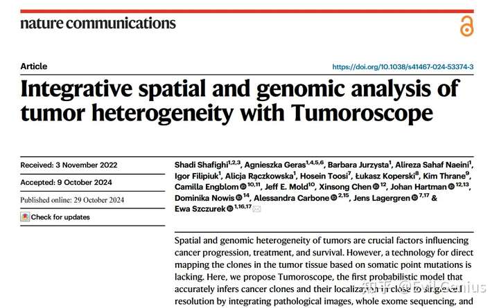肿瘤的空间和基因组异质性是影响癌症进展、治疗和生存的关键因素。