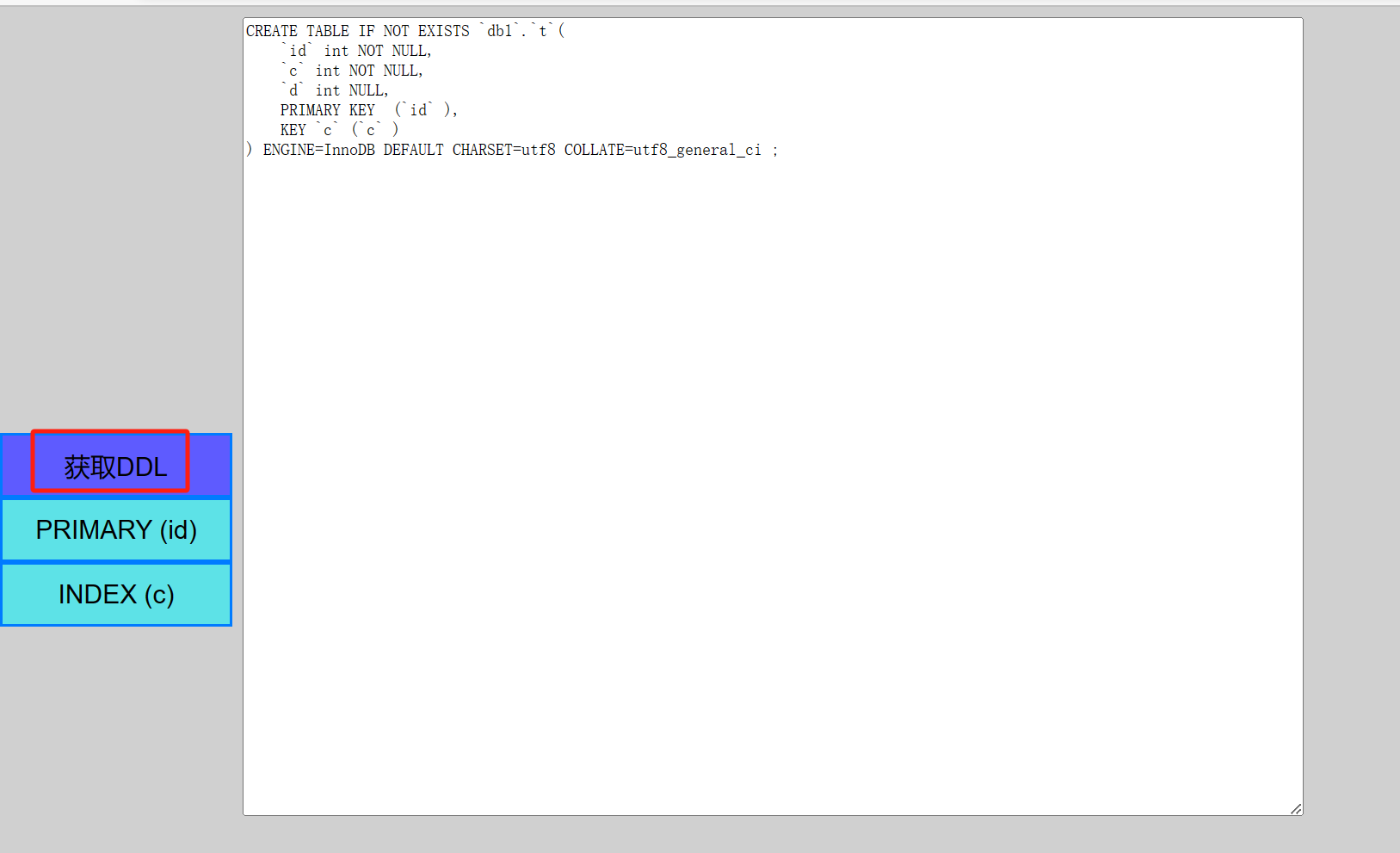 当前我们的DDL功能也是保留的, 点击左边的DDL也是可以查看的