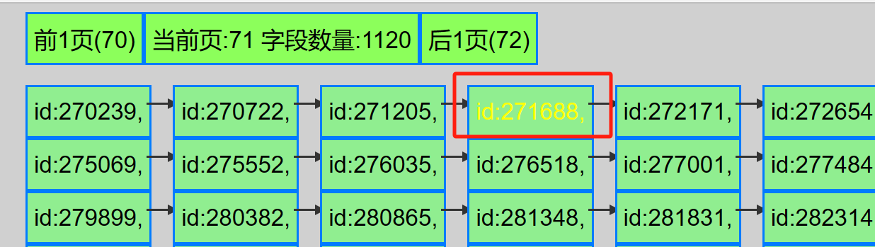 为了展示美观, 默认只展示key的值, 要详情的话, 点击任一节点即可. 比如我们点击id=271689的