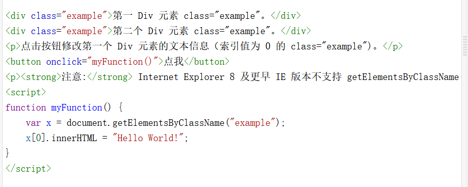 2、getElementsByClassName:是指通过元素的class属性获取指定元素集合。
