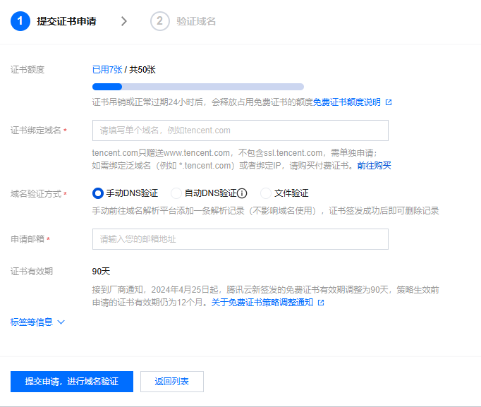 为了启用HTTPS,你需要为你的域名申请SSL证书。腾讯云提供了免费的SSL证书服务,具体步骤如下: