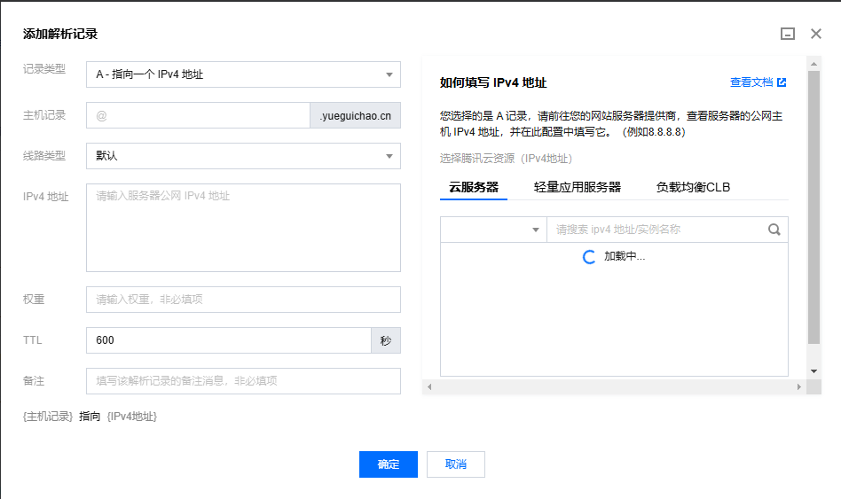 3.添加一条A记录,将域名指向你的服务器IP地址。