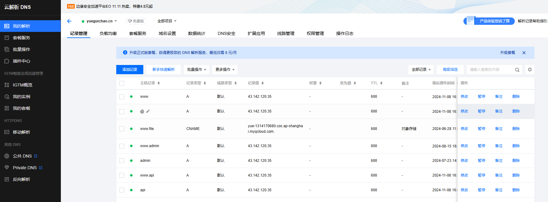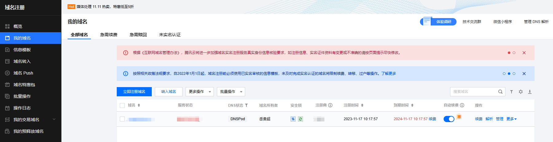 1.登录腾讯云控制台,进入域名管理页面。