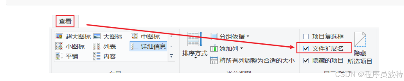 b.注意:我们需要将文件的后缀名显示出来